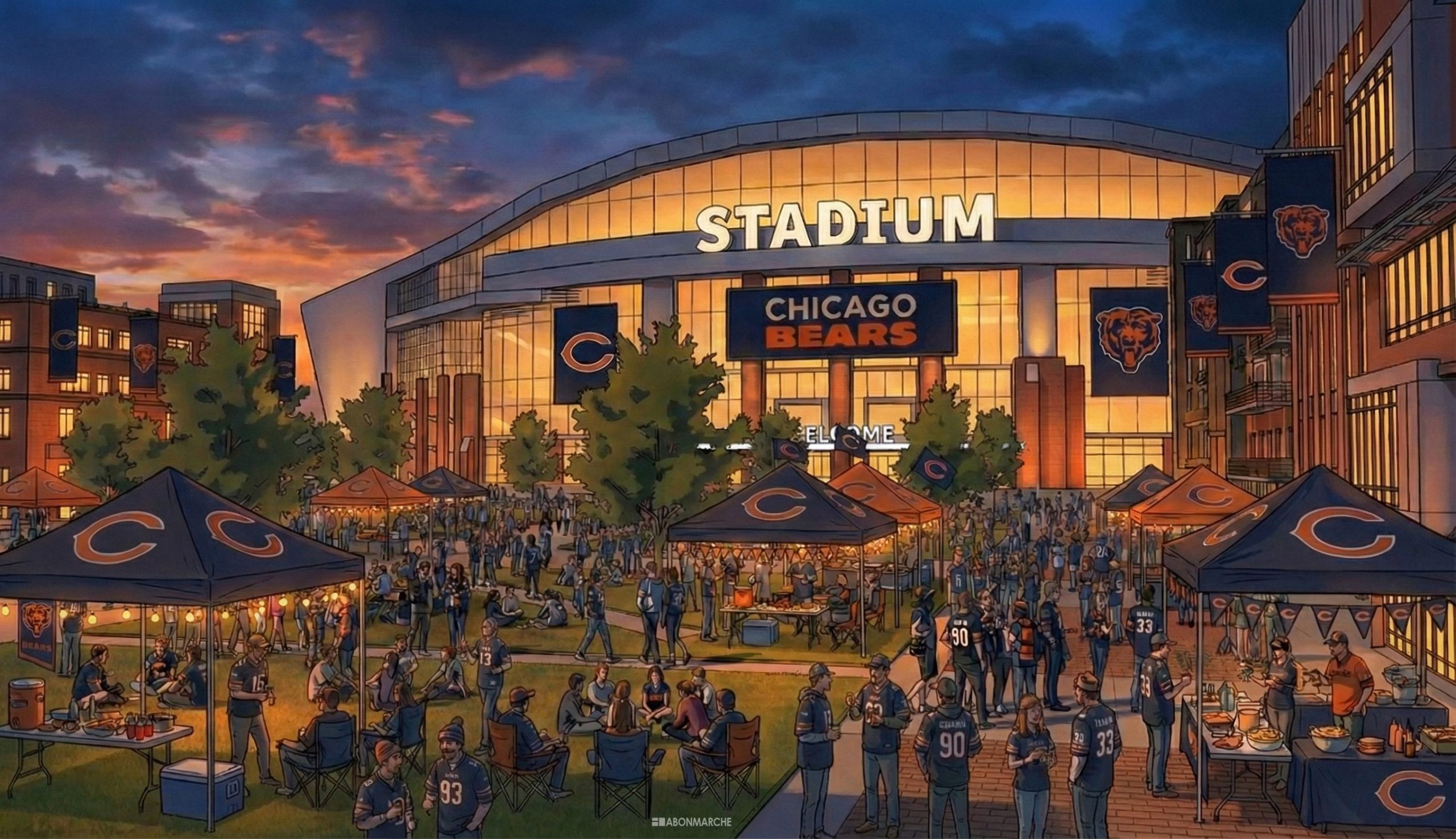 Halas Harbor is more than a stadium surrounded by parking. It is a full city built around football, family, culture, and entertainment.